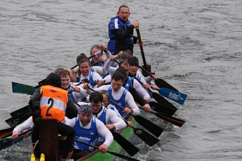 Die vorletzte Wende steht an. Wir kommen gut durch und hören wieder das Boot hinter uns, wie uns einige Meter weiter rechts überholt. Die letzte Wende, die letzte Strecke und nun alles, was geht, ins Paddel stecken. Wir schaffen es leider nicht mehr zurück auf Platz 6. Geschafft klettern alle aus dem Boot und jeder freut sich nun über trockene und warme Kleidung.