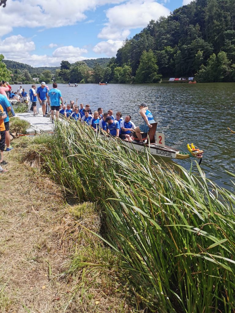 Ein besonderer Moment war das gemeinsame zurück paddeln mit den Vorstau Paddlern. Jede Mannschaft hielt sich an einer Seite des anderen Bootes fest. Auf der Rechten Seite die Vorstau Paddler, Auf der linken Seite die Hellas Drachen paddelten wir im Einklang begleitet vom gemeinsamen Takt der beiden Trommlerinnen zurück zum Steg. Dieses gemeinsame Erlebnis spiegelt den Geist der Veranstaltung wieder.