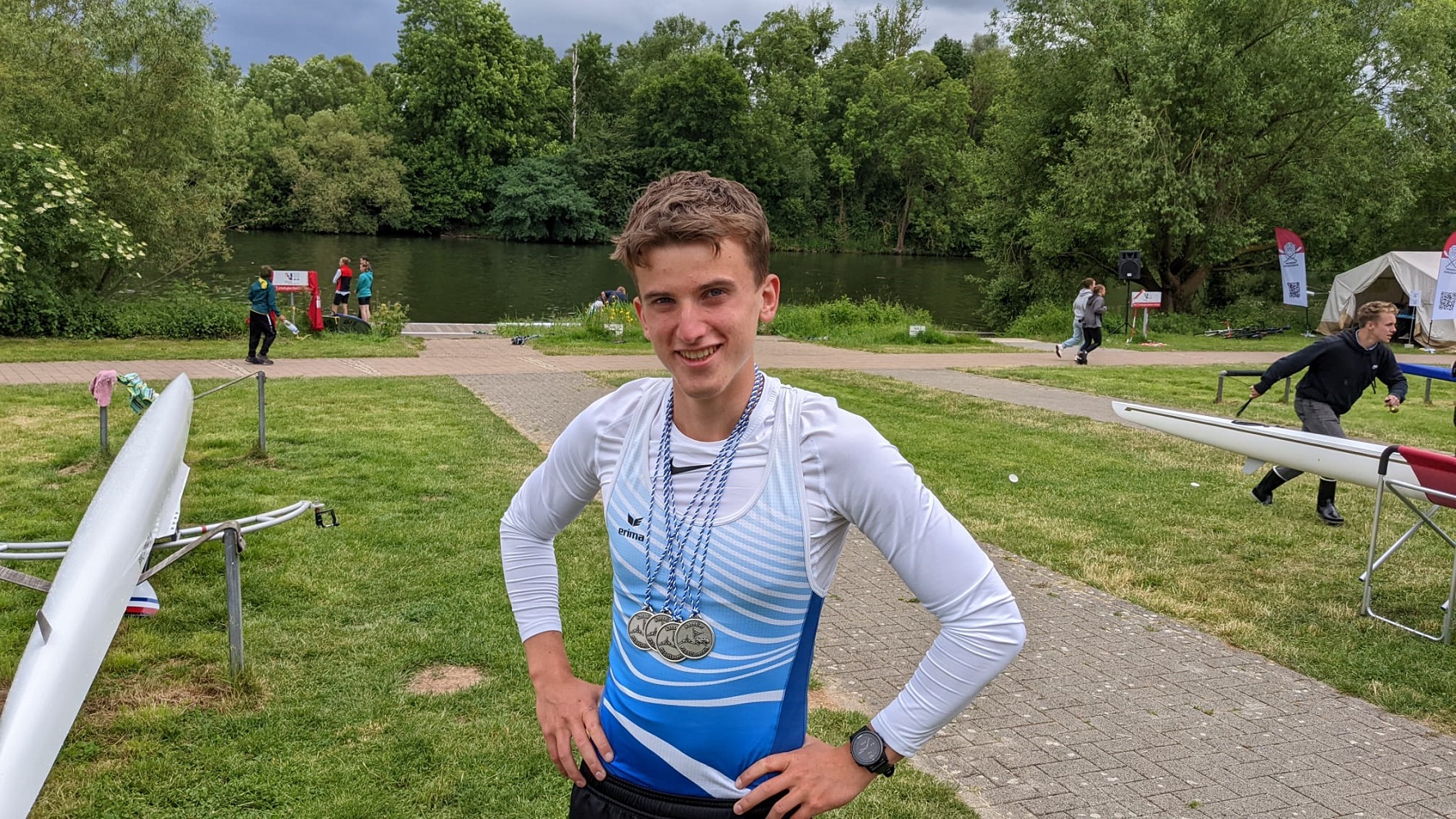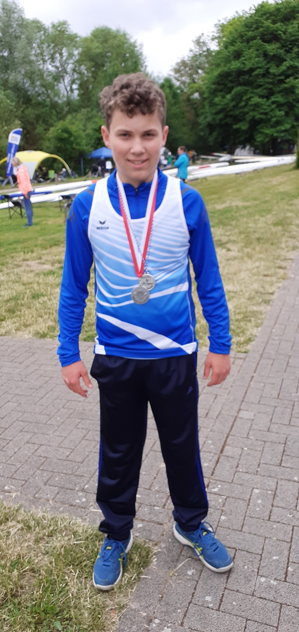 Es war seine 3. Regatta und sein erst 5. Rennen überhaupt in seiner noch jungen Ruderlaufbahn der Jungen Einer 13 Jahre in Kassel. Dennoch konnte er auf der 3000m Langstrecke seine Kontrahenten in einem beherzten Lauf distanzieren und gewann am Samstag seinen 1. Titel: Landessieger Hessen auf der Langstrecke. Einen Tag später ging am Sonntag dann auf die Normalstrecke von 1000m. Vom Start weg war es noch ein Bord an Bord Kampf mit einem seiner Gegner aus Offenbach. Doch nach etwa 300m der Strecke konnte sich Gero von seinen Gegnern absetzen. Von da an baute er seinen Vorsprung Stück für Stück aus und holte sich vor den beiden Booten aus Offenbach und dem Gießener RC Hassia auch den Landessieger Titel auf der 1000m Strecke.