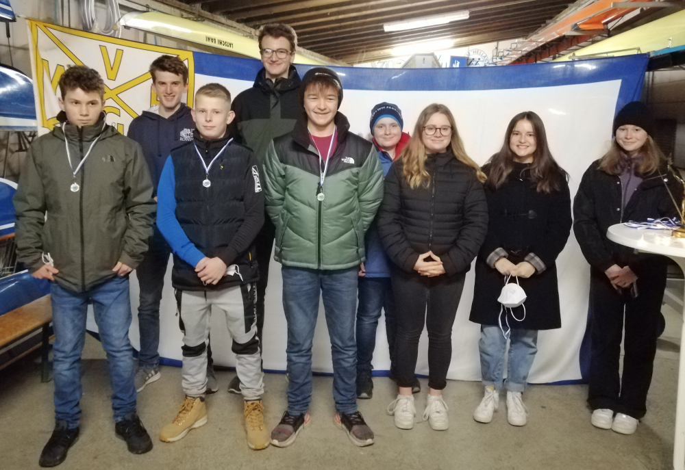 Hierzu haben wir die seit vielen Jahren nicht mehr veranstaltete Sportlerehrung zum Ausklang des Jahres wiederbelebt. Die Veranstaltung war zunächst als Zusammenkunft in unserem Vereinssaal geplant. Corona-bedingt haben wir uns schon auf die Einladung der Aktiven und derer nächsten Angehörigen beschränkt. Die aktuellen Corona-Infektionszahlen haben uns dann außerdem noch dazu veranlasst, die ganze Veranstaltung auf ein Minimum zu begrenzen und in die untere Bootshalle zu verlagern. Bei geöffnetem Hallentor war hier für hervorragend Durchlüftung und Abstand gesorgt, was bei den frostigen Temperaturen aber auch nicht wirklich angenehm war.
