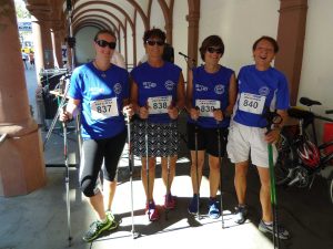 Los ging es mit den 5 km (Nordic-)Walken zu denen wir vier Starter stellten. Eher zufällig ergab es sich, dass die vier Damen nach weniger als einer dreiviertel Stunde dann auch fast gemeinsam ins Ziel einliefen.