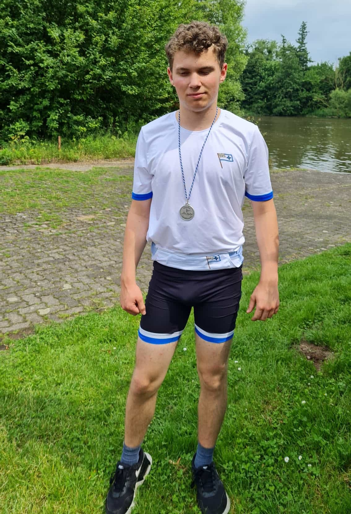 Im Leichtgewicht Männer Einer B allerdings war es nicht so leicht für Tim. Es war ein Rennen mit ständig wechselnder Führung. Einmal war der Hellas-Ruderer vorn, dann wieder sein Gegner vom Duisburger Ruderverein. Und so ging das die gesamte 1000m Strecke weiter.