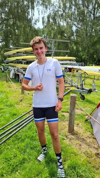 Einen Sieg konnte sich auch Gero Schwab im Junior Einer B der Leichtgewichte erkämpfen. Anders als die beiden Jungs hatte er mächtig zu kämpfen und sprach anschließend von seinem bisher härtesten Rennen überhaupt. Der Grund war der Ruderer von der Hanauer RG, der sich immer wieder an Gero vorbei schob und den Hellas-Ruderer zu Kontern zwang.