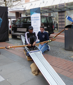 So konnte unser sechsköpfiges, immer wieder durch weitere fleißige Helfer verstärktes Stand-Team in vielen guten Gesprächen mit Freunden des Vereins und interessierten Passanten unseren Verein mit seinen vielfältigen Betätigungsmöglichkeiten vorstellen. Gerade beim Mitmachangebot, bei dem Kinder sich auch in ein echtes Ruderboot (Kindereiner) oder unser Drachenboot setzen konnten, waren wir wieder ganz vorne mit dabei.